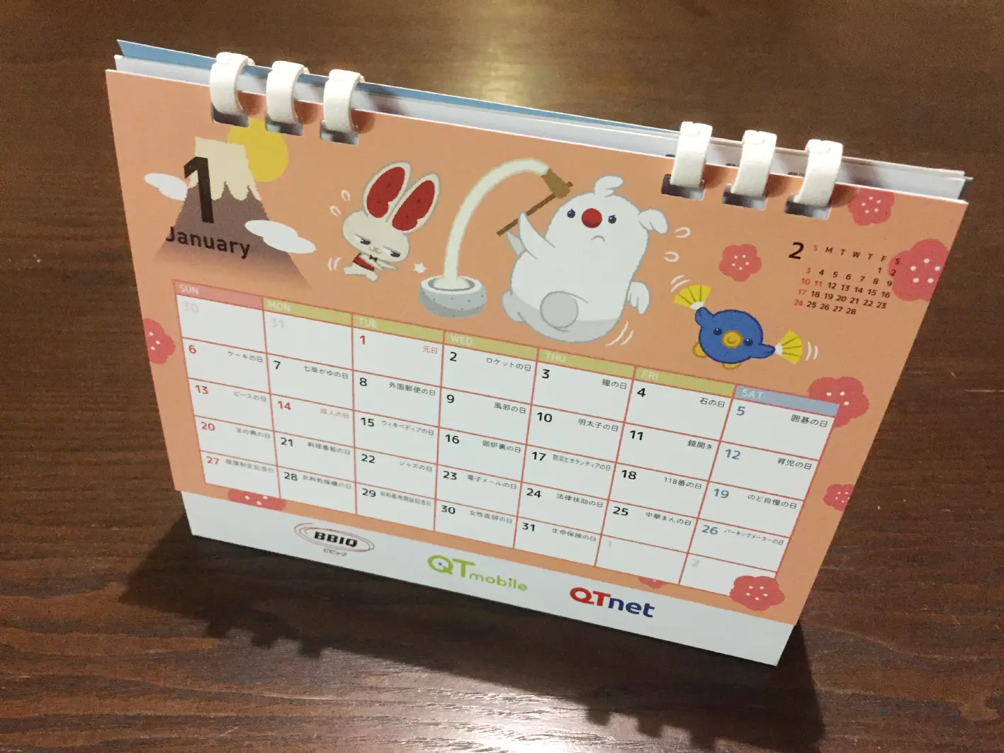 九州の光インターネット回線&プロバイダーBBIQ / 2019カレンダー